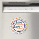Mit diesem wunderschönen und eleganten Blumenmagnet "Liebe ist geduldig, Liebe ist freundlich" können Sie Ihren Kühlschrank stilvoll ausspannen. Ein orangefarbener und blauer Hintergrund mit einem lustigen und festlichen Schriftart. Eine große tägliche Erinnerung dessen, was wirklich am wichtigsten ist.