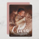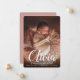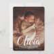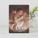 Lass den Namen des Babys in der Mitte der Bühne mit diesen eleganten Geburtsankündigungen, mit einem vertikalen Foto mit dem Vornamen des Babys überlagert in weißen Schriftzeichen. Personalisieren Sie sich mit dem Vor- und Mittnamen des Babys und den Geburtsstatistiken unten, und fügen Sie dem Rücken ein zusätzliches Foto hinzu, zusammen mit einer persönlichen Nachricht.