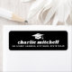 Schwarze oder benutzerdefinierte Abschluss-Rücksendeadressen-Aufkleber mit einem Graduierungspapier mit Ihrem Namen unten in einem fett Retro-Stil Schriftart. Weißer oder benutzerdefinierter Farbtext auf einem schwarzen oder benutzerdefinierten Farbhintergrund.