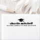 Weiße oder benutzerdefinierte Farbe Abschluss Rücksendeadressen-Aufkleber mit einem Graduierungsdeckel mit Ihrem Namen unten in einem fett Retro-Stil Schriftart. Schwarzer oder benutzerdefinierter Farbtext auf einem schwarzen oder benutzerdefinierten Farbhintergrund.