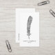 Eine minimalistische, moderne Visitenkarte, perfekt für freiberufliche Schriftsteller, Autoren, Texter, Redakteure und mehr. Vor einem weißen Hintergrund zeigt die Vorderseite eine Feder mit schwarzer Typografie, um Ihren Namen und Beruf hinzuzufügen. Die Rückseite der Karte bietet Platz, um Ihre Kontaktdaten hinzuzufügen.