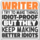Funny Writer Redewendungen "Schriftsteller Ich versuche, Dinge zu machen idiot Beweis, aber sie Behielt, bessere Idioten zu machen". Nehmen Sie sich dieses lustige Schriftstellerdesign als ein lustiges Geschenk für eine phantastische Mutter, einen Vater oder einen Freund.