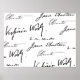 Die Unterschriften von vier der bekanntesten Schriftstellerinnen der Geschichte: Jane Austen, Charlotte Brontë, Virginia Woolf und Louisa May Alcott.