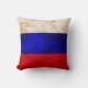 Die Flagge von Russland wird zum gealterten und schroffen Blick gemacht. Raue Beschaffenheiten bedecken die Flagge, die diesem Kissen ein grungy Gefühl gibt. Diese zackige russische Flagge ist ein Spaß und eine stilvolle Weise, Ihren Patriotismus zu zeigen.
