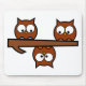 Drei schrullige Eulen, die auf einer Niederlassung - fast sitzen.