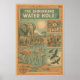 Dieses Vintage Kunstwerk im Stil eines Comic unterstreicht das Drama eines schrumpfenden Wasserlochs in der afrikanischen Savanne. Elefanten, Zebras, Flamingos, Babys und Krokodile versammeln sich unter der strahlenden Sonne, was die Spannung und Konkurrenz um lebenswichtiges Wasser widerspiegelt. Ein beeindruckendes Stück, das durch eine kühne Retro-Ästhetik das Bewusstsein für die Herausforderungen der Natur und des Klimas schärft.