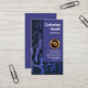 Hinter einem blauen Cover befinden sich die Details in der Mitte, mit dem Logo oben, gefolgt von dem Firmennamen, den Kontaktdaten und dem Slogan, mit dem Sie für Ihren Service werben können.