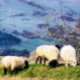 Ein schönes digitales Ölgemälde von Schafen, einige der fleißigen Bauernmädchen. Wales UK.