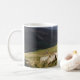 Ein fotografisches Design der walisischen Bergschaf Weiden auf der sonnigen Hanglage, genau wie der Regen gerade beginnt.