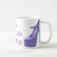 Eine Slogan-Kaffee-Tasse des Spaßes girly für Frauen, die Liebe beschuht. Lila und Lavendelversion.