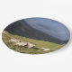 Ein fotografisches Design der walisischen Bergschaf Weiden auf der sonnigen Hanglage, genau wie der Regen gerade beginnt.