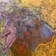 Ein ungewöhnliches und farbenfrohes abstraktes Kunstdesign eines Schafes.