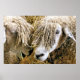 Zwei schöne Cotswold Schafe fotografierten in einem lustigen und humorvollen Moment, in dem sie miteinander sprachen. Cotswold Schafe stammen aus den Cotswolds in England und werden für ihre Wolle und Fleisch gezüchtet. Sie haben lange Fleecen mit fast goldener Note.