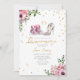 Shoe themed Quinceañera mit Illustrationen von rosa Sneakers und silberne funkelnde High Heels umgeben von Konfetti mit rosa floralen botanischen Designs oben links und unten rechts.
