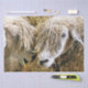 Zwei schöne Cotswold Schafe fotografierten in einem lustigen und humorvollen Moment, in dem sie miteinander sprachen. Cotswold Schafe stammen aus den Cotswolds in England und werden für ihre Wolle und Fleisch gezüchtet. Sie haben lange Fleecen mit fast goldener Note.