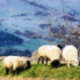 Ein schönes digitales Ölgemälde von Schafen, einige der fleißigen Bauernmädchen.