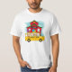 Für zurück zu Schule, für Lehrer, für Studenten, für Vorschullehrer und Klassenzimmerberater, unsere Schul-und Schulbus-T - Shirts, Knöpfe, Tassen, Taschen, Karten, Aufkleber und andere Schuleinzelteile sind- große Geschenke groß und Sie können sie besonders anfertigen, indem Sie Text addieren! Bunt und niedlich, dieses kennzeichnen Lehrer und Schulkleider- und -geschenkeinzelteile vier Strichmännchenstudenten auf einem gelben Schulbus mit einem roten Schoolhouse.
