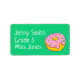 Niedliche, farbenfrohe Rosa-Donut-Bücheretiketten oder Aufkleber für Schüler. Dieses Design zeichnet sich durch eine niedliche rosa Yummy Donut vor einem individuell anpassbaren Minzgrün-Hintergrund aus. Der Text ist vollständig anpassbar, um eigene Namen und Klassendetails zu enthalten.