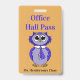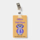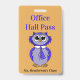 Fun School Office Halle Pass in hellorange mit einem Cartoon blauen Uhu getan. Personalisieren Sie den benutzerdefinierten Text, um zu lesen, was Sie gewollt haben.