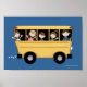 Hier ist ein niedlicher kleiner Schulbus, der einfach die Straße hinunterfährt..
