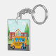 Ein Schulbus und sein Fahrer vor einer Schule. Dieses Design wirkt auf diesem Schlüsselanhänger wirklich effektiv