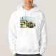 Ein Schulbus Stadt-Design mit der Stadt im Hintergrund. Dieses Design sieht auf diesem Mens Hoodie wirklich effektiv aus