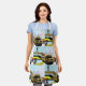 Ein Schulbus Stadt-Design mit der Stadt im Hintergrund. Dieses Design sieht auf dieser Schürze wirklich effektiv aus