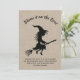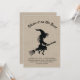 Eine geile Hexe, die auf einem Besenstiel fliegt und das lustige Sprichwort, Schuld daran auf den Boos, betont diese Halloween-Kostüm-Party Einladung auf einem illustrierten Burlhintergrund und macht diese Einladung perfekt für das erwachsene Halloween-Party.