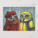 Zwei wunderschöne Eule - Schulliebe, niedlich romantische Szene in einem Birkenwald. Aus der originalen Ölpastellmalerei von Tanya Bond