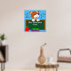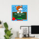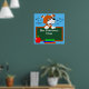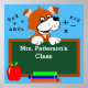 Personalisiertes Grundschulposter eines Cartoon-Hundes mit einer Tafel, die mit dem Namen des Lehrers gedruckt wurde. Apfel und Bücher vor der Tafel. Anpassen der Text- und Hintergrundfarbe.