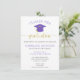 Ankündigen Sie Ihre Abschlussfeier und feiern Sie Ihre Schulfarben mit dieser lila Einladung. Diese Einladung enthält eine lila Kappe mit Goldprägung. Passen Sie den Text an, um alle Details Ihrer Abschlussfeier zu teilen.