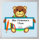 Stellen Sie sich dieses personalisierte Klassenposter eines Teddybären mit weißem Banner mit Lehrername und Bleistift und Büchern im Vordergrund vor. Wird jeden Grundschulunterricht aufheitern. Auch die Hintergrundfarbe kann geändert werden.