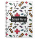Schulkrankenversicherung Medical Pattern Fun Notes Spiral Bound Notebook. Medizinischer Hintergrund mit Spritze, Verbänden, Medikamenten und roten Kreuzen. Text liest SCHOOL NURSE und kann mit anderen Informationen personalisiert werden. Spaß schülerliche Geschenke.