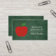 Klassische, moderne Visitenkarten der Grundschullehrer mit grünem Chalkboard-Hintergrund und einem einfachen roten Apfel vorne. Fügen Sie Ihre Ersatzlehrer-Kontaktdaten auf der Rückseite hinzu. Diese Karten können auch für Principals, Superintendenten oder andere Pädagogen im Schulbezirk verwendet werden.