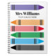 Das Notizbuch des Lehrers mit bunten Stiften. Niedliche Geburtstag für Kindergartenlehrer, Vorschullehrer, Grundschullehrer, Lehrer der 1. Klasse usw. Personalisieren Sie mit Ihrem eigenen Namen und Untertitel.