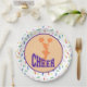 Orangefarbene Papiertüte mit Lila Käsescheibe und Typografie