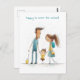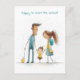 Schulmädchen mit Mutter und Vater Postkarte