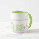 Diese hübsche Tasse mit einem stilvollen rosa und grünen Entwurf setzt einen Frühling in Ihren Schritt ein! Entworfen für einen Schulpsychologen, kennzeichnet diese Tasse interessante Beschriftung und einen modernen Blumenentwurf.