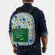 Ein lustiger Rucksack mit einem Schulthema, das das ganze Jahr über genutzt werden kann. Diese robuste Tasche eignet sich hervorragend für Bücher, Sportgeräte, Reisen und vieles mehr. Es hat einen Reißverschluss vorne, der wie eine Tafel aussieht, mit einem Bereich, den Sie anpassen können.