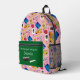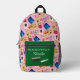 Ein lustiger Rucksack mit einem Schulthema, das das ganze Jahr über genutzt werden kann. Diese robuste Tasche eignet sich hervorragend für Bücher, Sportgeräte, Reisen und vieles mehr. Es hat einen Reißverschluss vorne, der wie eine Tafel aussieht, mit einem Bereich, den Sie anpassen können.