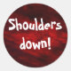Wie viel Nackenschmerzen usw. bekommen Sie, weil Ihre Schultern ihr Leben bis zu Ihren Ohren verbringen? Setzen Sie diese Aufkleber um Ihr Haus, Auto, Arbeitsplatz... um Sie daran zu erinnern, sich zu entspannen und ein wenig von dieser Spannung zu lösen. Ich setze sie auf die Innenseite von Türen, durch meinen Laptop Tastatur, Sonnenblende im Auto... es hat geholfen.