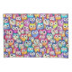 Eine lustige doodle Abbildung der Gesichter von wilden Eulen in Blau, Orange, Grün, lila und Rosa, die sich in einem sich nahtlos wiederholenden Collage-Muster aneinander gereiht haben. Diese skurrile Aquarellgrafik ist das perfekte Geschenk für Wildtiere, Naturliebhaber und Eulenfreunde. Verwöhnen Sie sich oder Ihren wütenden Freund mit diesem gemütlichen Schlafzimmeraccessoire.