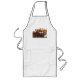 Weiße Schürze mit Bild der in Büchsen konservierten Gelees und der Eier in einem Korb. Captaining liest selbst gemachtes vom Herzen