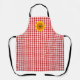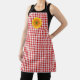 Diese Schürze wird in einem niedlichen Gingham-Rot-Weiß-Gingham-Druck mit Sonnenblumenakzent dargestellt. Farbe Rote Streifen Schwarz Passen Sie dieses Objekt an oder kaufen Sie, wie es ist. Sie können eine andere Gurtfarbe wählen. Bild