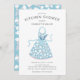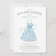 Brautparty-Design der Küche mit einem hübschen, Vintag blauen Set mit blühender Schürze auf weißem Hintergrund mit einem passenden Blumenrücken für eine besondere Touch.
