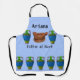 Potter bei der Arbeit Schürze mit einem mittelblauen Hintergrund, einem Töpferrad und hübschen blauen Töpfen. Der Name auf der Schürze kann geändert werden. Dank Pixabay für einige der Elemente im Design.