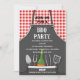 Dieses Design verfügt über einen roten Gingham-Hintergrund mit einer Schürze, die mit allen wesentlichen GRILLEN Party-Elementen gefüllt ist. Einfach mit Ihren Party-Informationen personalisieren. Ideal für jeden Anlass.