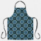 Diese dramatische Schürze hat einen Gesamtdruck von Kacheln mit grünen und blauen Medaillen. Sie werden diagonal auf einem schwarzen Hintergrund platziert. Genau das Richtige für Ihr besonderes Abendessen. Dieses Muster kommt aus einem handgefertigten Fliesenmuster. Von Oregon Tile Maker Fay Jones Day