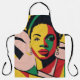 Die Schürze zeigt lebendige, vom afrikanischen Erbe inspiriert Muster. Ideal, um eine Touch von Tradition und modernem Flair zu alltäglichen Aktivitäten wie Kochen, Kunsthandwerk oder Hosting hinzuzufügen. Das Design repräsentiert die Verbindung der Trägerin zu ihren Wurzeln und ihre Fähigkeit, dieses Vermächtnis in jeden Teil ihres Lebens zu tragen.