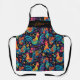 Moderne Schürze mit einem farbenfrohen, blumengeschmückten Hahnenmuster auf schwarzem Hintergrund und einem femininen, handgeschriebenen Schriftnamen. Personalisieren Sie mit Ihrem Namen.